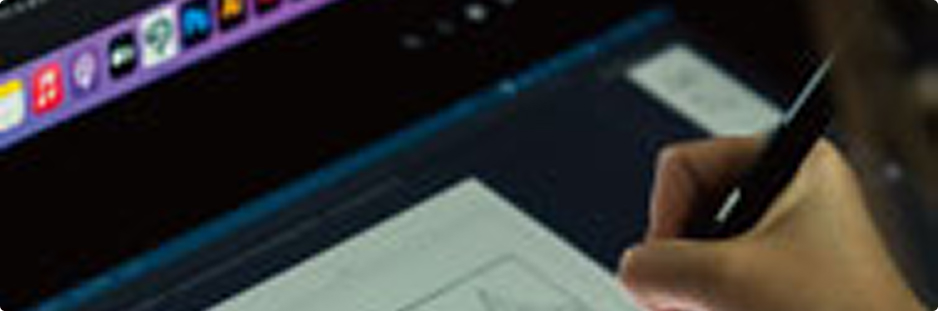 集中して作業できる個別デスクと、適度な距離感を 保った配置。仲間の存在を感じながらも、自分の世界に没入できる空間設計。